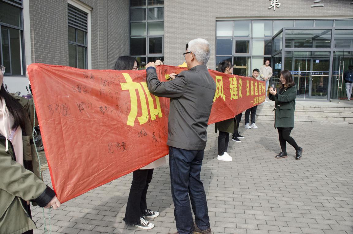 12点30分许,活动圆满结束。近百名名各学院同学在我们的横幅上亲笔签下姓名,愿与我们共同创建纯洁的学术氛围。此次学术道德签名活动的开展,引导同学们遵守学术规范、坚守学术诚信、完善学术人格、维护学术尊严,摒弃学术不端行为,努力成为优良学术道德的践行者和良好学术风气的维护者,推进科学道德和学风建设水平的进一步提升。“加强学风建设,弘扬道德风尚”之路任重而道远,让我们携手共创良好的学术道德环境。