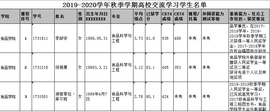根据教务处文件《关于选派2019-2020学年秋季学期赴台湾海洋大学交流学习的通知》和《Kaiyun官方网站登录入口学生出国(境)交流学习工作实施办法(试行)》的要求,经个人申请,食品学院审议,现将食品学院2019年选派学生赴台湾海洋大学学习候选人进行排序后上报教务处,特此公示。公示时间2019年3月19日-2019年3月21日。