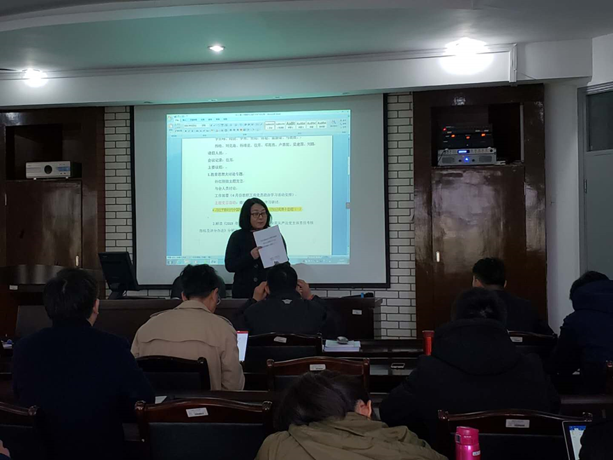 首先,陈慧解读了《上海海洋大学2019年二级学院(部)落实全面从严治党主体责任考核指标及评分办法》,围绕重要项目、政治生态建设、基层党建工作、宣传思想文化工作、党风廉政建设和党内监督工作、统战工作、综合治理工作等就今年的工作做了总部署,并分析了薄弱环节、落实相关责任人提出改进对策,同时向大家汇报了我院全面从严治党、党建工作、统战工作、意识形态工作和语言文字工作计划的制定情况,并对今年的党务工作坊研讨活动安排做了介绍,要求各个支部在学院工作计划的基础上制定年度工作计划。