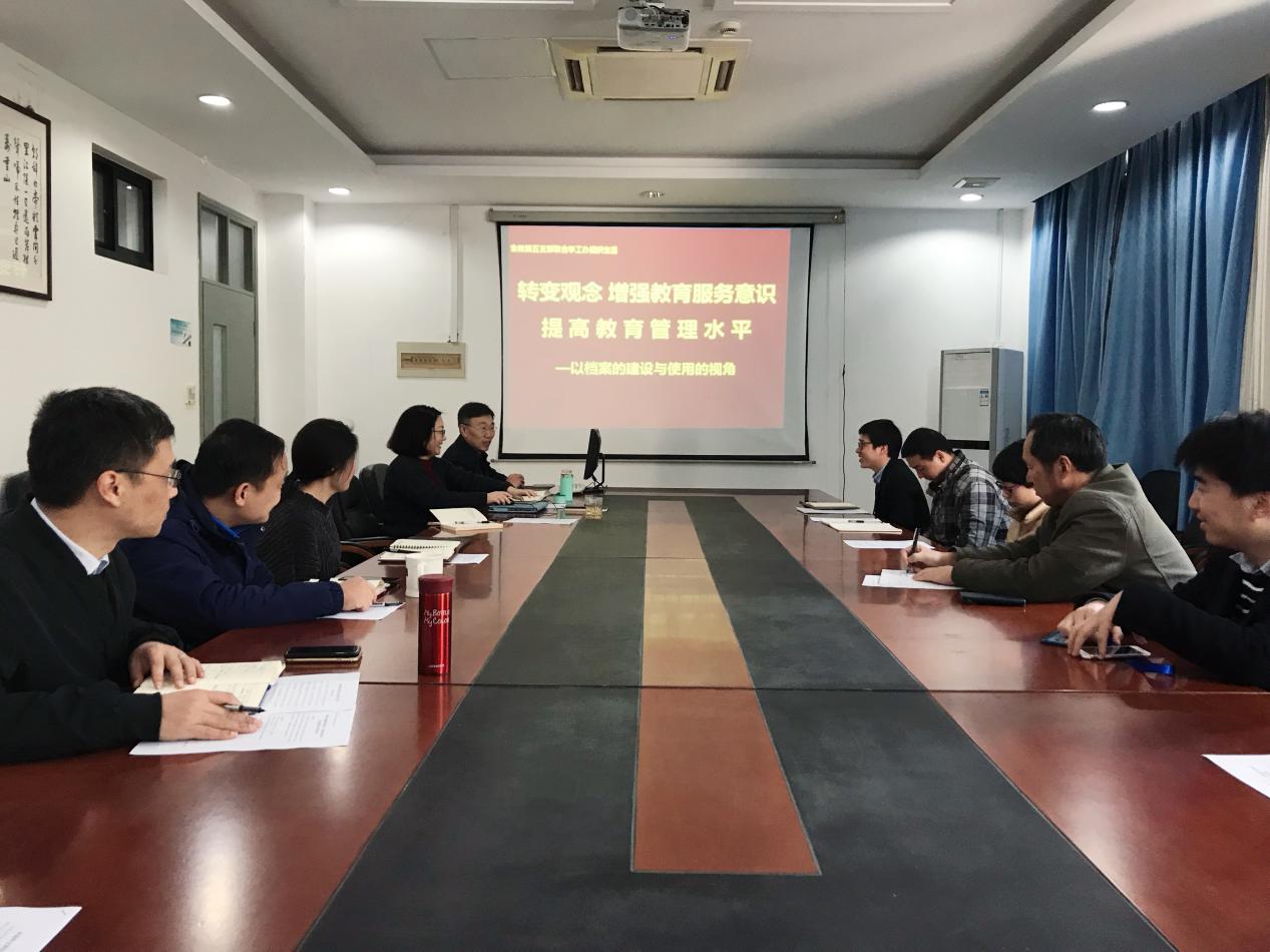 为认真学习贯彻党的十九大精神、新时代全国高校本科教育工作会议和全国教育大会精神,推进教育思想大讨论活动,4月12日,食品学院教工第五支部开展“转变观念 增强教育服务意识 提高教育管理水平——以档案的建设与使用的视角”的院级组织生活观摩活动,支部全体党员、学生支部书记参加了本次活动。
