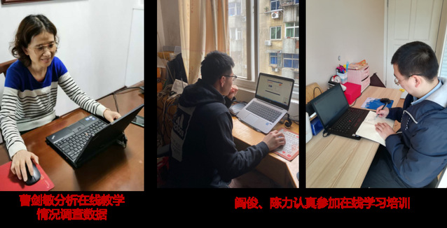 院教学秘书曹剑敏有着三十年的教学管理经验,1月底时,当教育部发布推迟开学通知,她就敏锐地察觉到在线教学的可能性,自主设计表格,就我院教师课程在线情况进行摸底,随后又根据教务处的统一安排,就我院课程的在线建设情况、线上教学方案等进行全面的调查,做到底数清、情况明,为领导决策提供参考。学生秘书陈力、研究生秘书阎俊则认真参加各类在线教学的培训,主动靠前一步掌握相关知识和技能,便于解答师生问题。金银哲副院长带头组织教学保障工作,每日晨报介绍工作进展情况、及时发布各类提示信息,处处透着温馨和关爱。