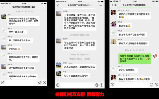 从2月9日学校发布《关于在“泛雅网络教学”平台中激活课程的通知》以后,我们的老师从刚开始的焦虑,到接受专题培训后的跃跃欲试,再到在线教学测试时的忐忑不安,再到正式开讲时的兴奋和释然,心情就像过山车一般。半个月来,微信群里都是这个话题,有急切求助后解决问题的欣喜,有小试牛刀后的小得意,还有相互鼓励、相互支招的温馨场面……终于到了3月2日在线开学第一天,老师们使出浑身解数、用上十八般武器,线上授课平稳顺利。