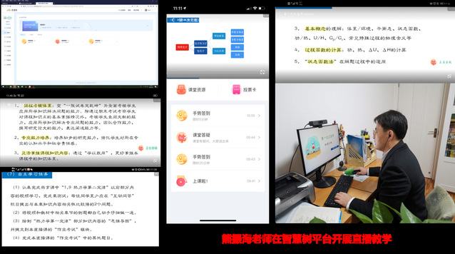 加工系主任包建强大胆尝试,利用动画设计软件录制视频授课材料,然后运用企业微信的在线会议功能组织线上授课。化学系熊振海老师依托智慧树尝试直播授课,制冷系周然老师则整合了泛雅平台、钉钉和学习通多种软件的优势,多管齐下、推进在线教学……