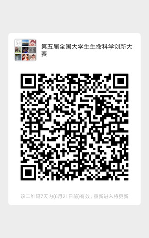2、请各参赛项目指导教师与负责同学加入“第五届全国大学生生命科学创新大赛”微信群(6月21日前扫码进入有效);