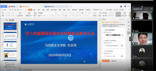 6月23日上午,食品学院利用腾讯会议组织召开课程思政探索与思考FD活动,会议邀请“上海市课程思政示范课程负责人,上海市课程思政领航团队负责人,国家精品在线开放课程《环境问题观察》负责人,华东师范大学张勇副教授、上海海洋大学马克思主义学院副教授仇永民、Kaiyun官方网站登录入口副教授蓝蔚青作为嘉宾作报告并参与研讨。活动由食品学院副院长金银哲主持。
