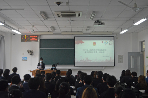 在全体齐唱中华人民共和国国歌后,由食品学院学生会主席团成员史馥毓向大会作《2020-2021学年学生会工作报告》,回顾了上一学年团委学生会工作情况,并表达了对下一届学院学生会工作的期望。