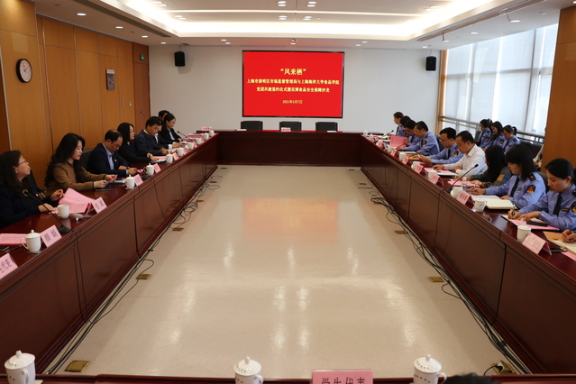 为进一步加强党史学习教育与基层党支部建设交流,推动办实事、促发展,食品学院在挂职崇明区团委副书记刘鹏的促进下,于5月7日与崇明区市场监管局开展“共建同行 齐护花博”党团共建签约仪式,并围绕党团共建以及花博食品安全保障等方面展开交流讨论。会议由崇明区市场监管局党组副书记、副局长刘汉平主持。食品学院师生代表二十余人与会。