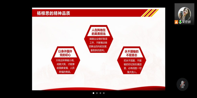 习近平总书记指出,只有坚持思想建党、理论强党,不忘初心才能更加自觉地担当使命,才能更加坚定要把学习贯彻党的创新理论作为思想武装的重中之重,并同学习党史、新中国史、改革开放史、社会主义发展史结合起来。“四史”内容各有侧重,但整体讲的就是中国共产党为人民谋幸福、为民族谋复兴、为世界谋大同的实践史。为此,20级食品4班团支部利用腾讯会议,来自上海海洋大学青年党史微课宣讲团的成员宋欣妍同学以“革命英雄杨根思,精神血脉永流传”为主题进行线上微课宣讲,食品4班全体同学参加了本次主题教育活动。