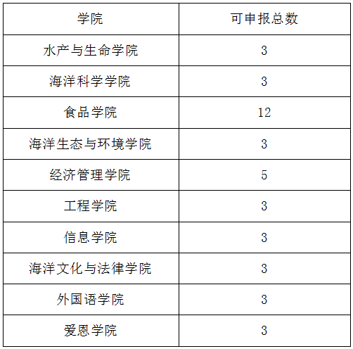 四、申报名额分配(各学院推荐项目建议不少于以下数额)