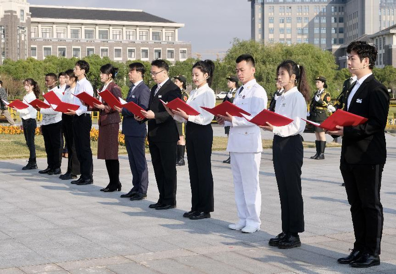 仪式上,教师代表、退伍大学生代表、留学生代表、学生骨干代表以饱满的精神面貌,声情并茂地朗诵《海洋奋斗曲》,以诗歌群诵的形式展现海大师生的家国情怀,表达对学校的赤子热忱,海大师生必将以更加昂扬的状态迎接学校“十四五”创新发展规划、走好新时代海洋强国建设的新征程。