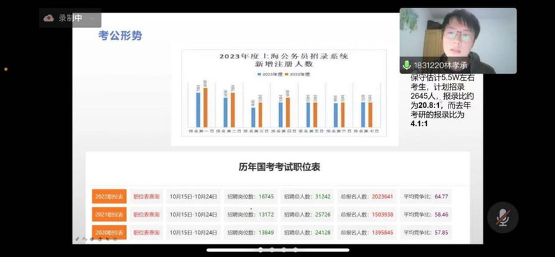 在就业较为困难的大环境下,有很多毕业生同学选择抓住应届生的身份参加公务员考试。为了帮助同学们更好地了解公务员考试的流程和准备方式,食品学院的邓高燕老师邀请了22年毕业且成功考取了公务员的三位校友林孝承、徐军和侯根丽于2022年11月12日进行了考公经验分享会。三位校友详细地分享了参加公务员考试前应该如何选岗,岗位的报考难度,如何分配时间来进行考试准备,以及考试前酒店的选择和考试过程中需要注意的问题,给予了考公的同学们鼓励和帮助。