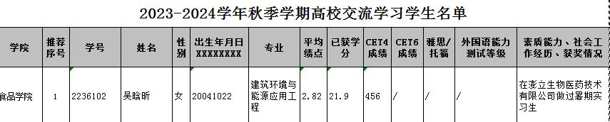 根据教务处文件《关于选派2023-2024学年秋季学期赴韩国釜庆大学交流学习的通知》要求,经个人申请,食品学院审议,现将食品学院2023-2024学年秋季学期赴韩国釜庆大学交流学习申报情况公示如下。公示时间2023年3月10日—2023年3月14日。