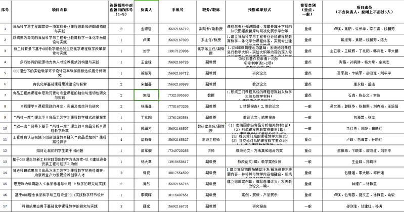 根据教务处文件《关于申报2024年上海海洋大学教学研究与改革项目的通知》要求,经个人申请,食品学院专家审议,现将食品学院2024年校级教学研究与改革推荐项目公示如下: