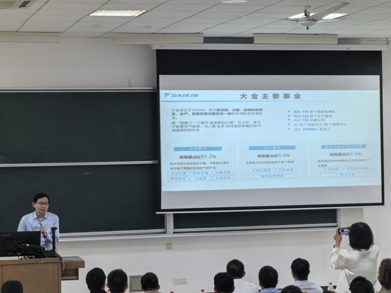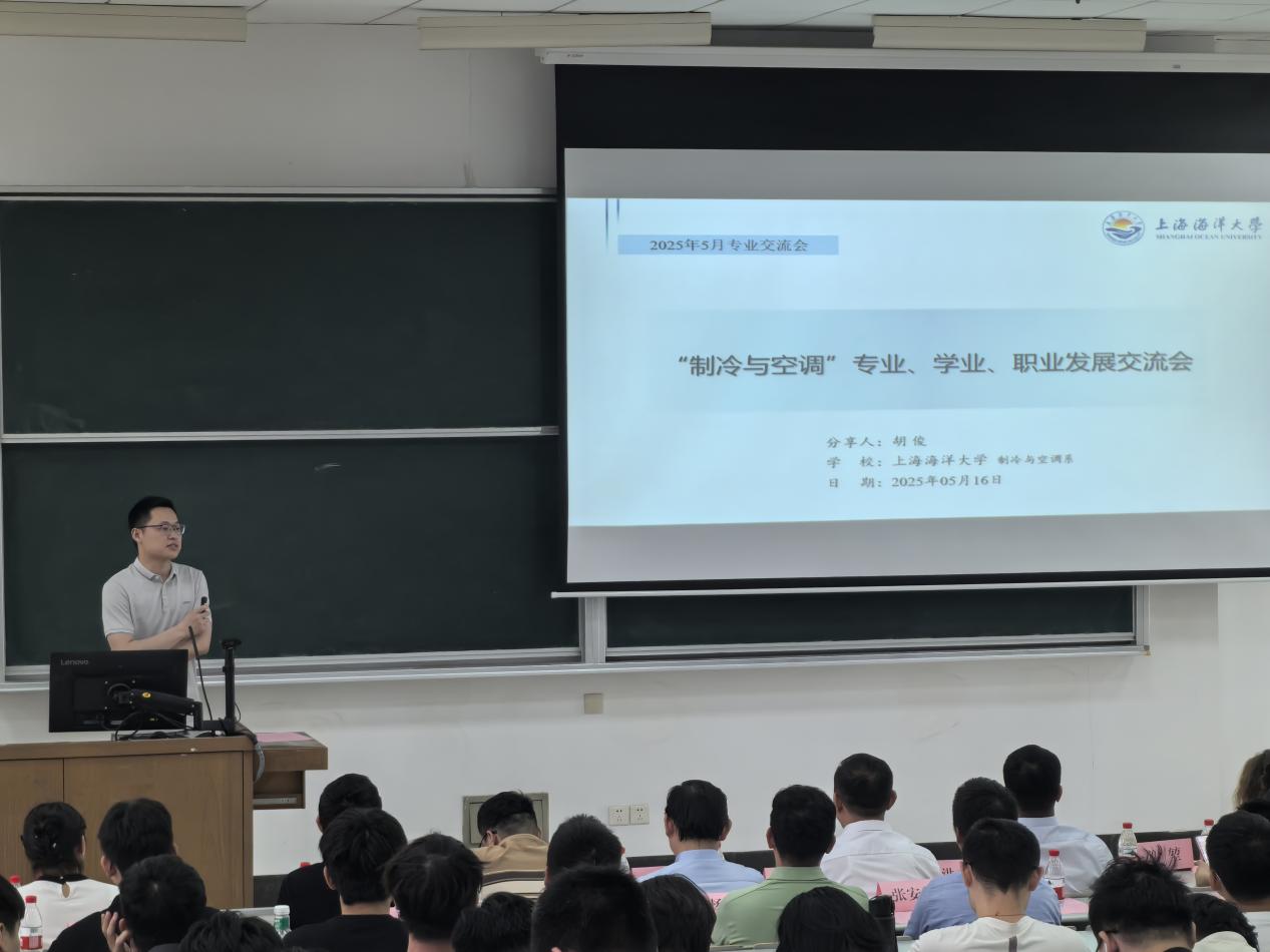 校友与企业代表环节同样亮点纷呈。杰出校友洪东涛结合职业历程剖析行业趋势,青年教师胡俊分享了自己在海大学习的难忘岁月,同时从知识、领域、行业三个层次分享了自己对建环专业的理解。江森自控制药与食品冷冻业务区域经理高雪垒与大金(中国)莫圣飞部长分别从技术革新、行业前景、职业发展等角度进行了精彩报告。