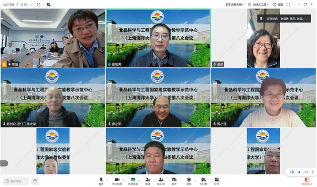 为贯彻落实教育部办公厅〔2016〕3号文件精神,进一步加强食品科学与工程国家级实验教学示范中心建设,更好提升其示范辐射效应。2025年12月2日,食品科学与工程国家级实验教学示范中心(上海海洋大学)教学指导委员会第八次工作会议采取线上线下相结合的方式举行。中国工程院院士/南昌大学原副校长谢明勇教授、中国农业大学食品科学与营养工程学院院长廖小军教授、浙江工商大学科技处处长韩剑众教授、江南大学食品学院副院长王周平教授、光明食品集团原战略企划部副总经理余从田教授级高工、上海应用技术大学原教务处处长周小理教授、原校研究生院执行院长王锡昌教授等教指委成员线上出席了本次会议。校资产与实验室管理处处长王宪怡、教务处处长胡庆松、示范中心主任谢晶、食品学院教学副院长焦阳、各系主任及专业负责人一同参加了本次活动。