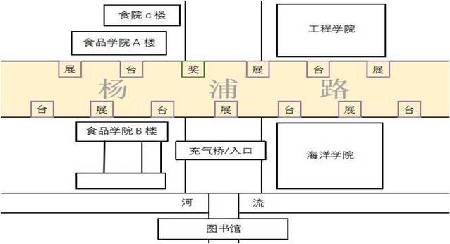 活动地点:杨浦路(食品学院A楼旁的干道,详情见图,如下雨地点调整为风雨操场)