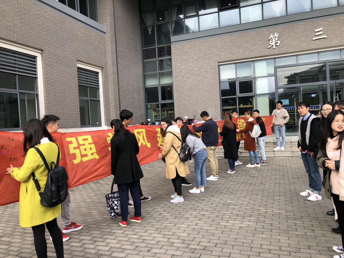 12点30分许,活动圆满结束。近百名名各学院同学在我们的横幅上亲笔签下姓名,愿与我们共同创建纯洁的学术氛围。此次学术道德签名活动的开展,引导同学们遵守学术规范、坚守学术诚信、完善学术人格、维护学术尊严,摒弃学术不端行为,努力成为优良学术道德的践行者和良好学术风气的维护者,推进科学道德和学风建设水平的进一步提升。“加强学风建设,弘扬道德风尚”之路任重而道远,让我们携手共创良好的学术道德环境。