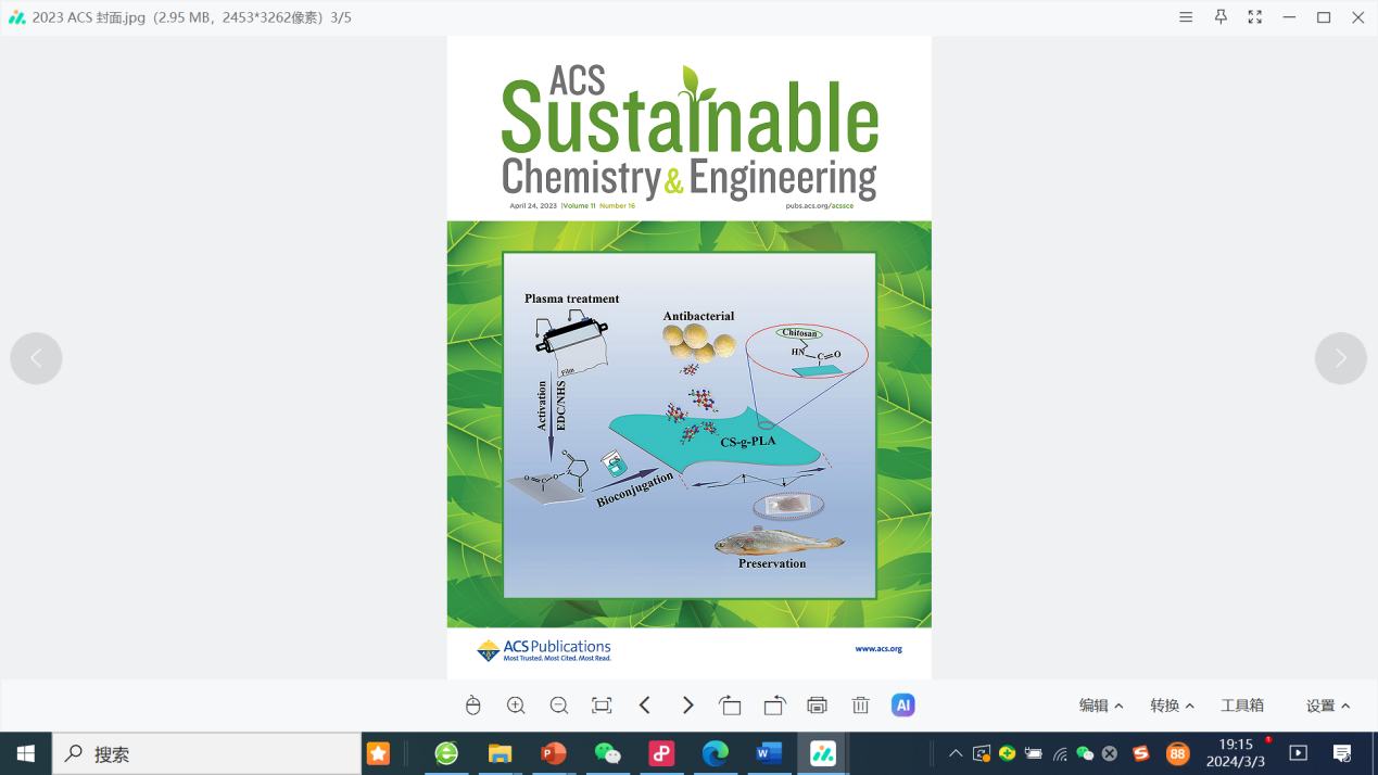 23. Yi Hao, Mengmeng Zhang, Boqiang Liu, Wenya Ma, Qingfeng Dong, Min Fan, Yifen Wang, and Li Li*. Nonmigrating Active Antibacterial Packaging: Antimicrobial Mechanism against Staphylococcus Aureus and Its Application in Large Yellow Croaker. ACS Sustainable Chem. Eng. 2023, 11, 6220−6229. (封面文章)(2023IF 9.2,JCR1区)