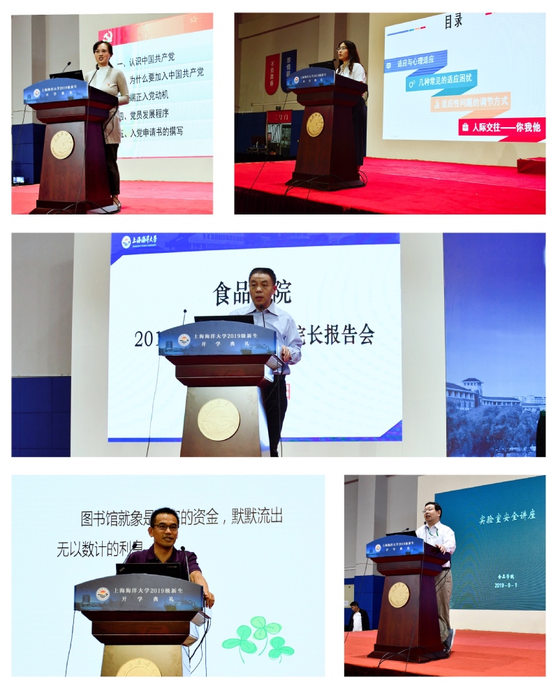 会议第二阶段专题报告会共分为四大板块,分别为“入党启蒙教育报告、心理健康教育报告、图书资源及其利用报告以及实验室安全报告。首先,由食品学院专职组织员杨晗老师为新生们开展入党启蒙教育,杨老师从“党章”、“党史”,及“如何树立正确的入党动机”等方面入手,叮嘱同学们要倍加珍惜中国共产党多年艰苦奋斗打下的良好基础,主动学习党的理论知识,提高自身思想觉悟,努力发展成为一名合格的中共党员。心理咨询中心冯梦倩老师以“适应”为关键词,从适应与心理适应、常见的适应困扰、适应性问题的调节方式和人际交往方面向新生们解读心理疑惑,引导学生思考和认识生命之美。接着,图书馆刘金立老师为新生们带来了入馆教育,简单介绍了上海海洋大学图书馆的资源分布、时间安排、借还书注意事项等。最后,实验室与设备管理处陆文宣副处长以安全事故为例,呼吁大家遵守实验室操作规范,并由院实验中心主任周颖越老师为同学们进行实验室安全讲座。