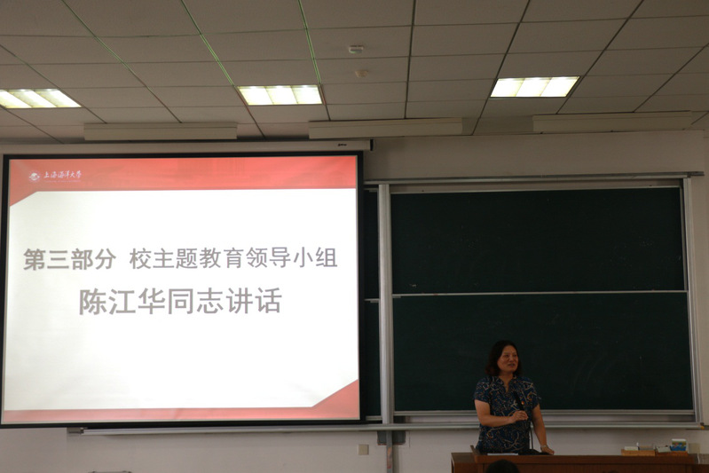 陈慧向与会人员传达了校党委书记吴嘉敏同志和市委第十一巡回指导组组长周蔚中同志在我校主题教育动员会上的重要讲话精神,详细解读了《上海海洋大学党委关于开展“不忘初心、牢记使命”主题教育的实施方案》,围绕主题教育总体要求、处级以上领导班子和领导干部层面的具体要求、基层党支部层面的具体要求以及院党委层面的组织领导职责做了介绍,要求大家结合学院和支部的实际情况予以贯彻落实。