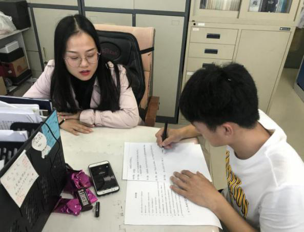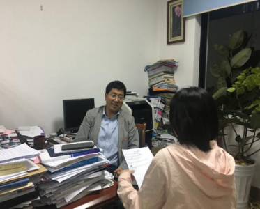 傍晚18点左右,我们在办公室门口遇到刚开会结束的赵老师,他热情地邀请我们到他的办公室里。他平易近人和蔼可亲的态度,顿时让我们稍有紧张的心情放松了不少。学生时期的赵老师深受身边优秀党员的影响,他坚定的向党组织递交了入党申请书,成为党员之后更是以身作则起到榜样的作用,他始终坚信,服务社会、服务人民,是我们共产党人的初心和使命。