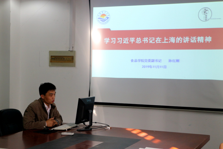食品学院党委于11月11日下午组织院党委中心组扩大学习会,专题学习习总书记考察上海重要讲话精神。学院党委副书记孙红刚做了专题学习辅导报告。院党政领导、师生支部书记20余人参加。