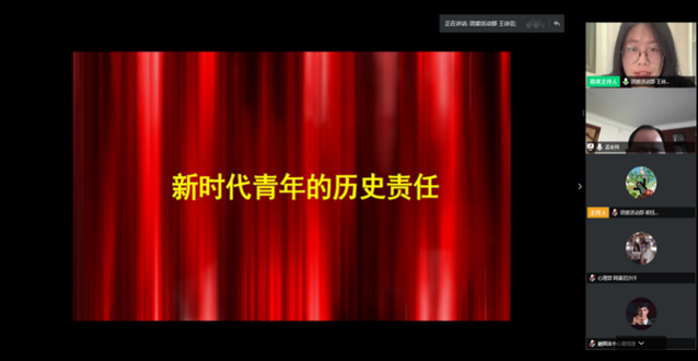 2020年4月28日,由食品学院团委活动部承办的“习近平总书记给北大援鄂医疗队全体90后党员回信——当代青年的历史责任”讲座在腾讯会议上如期举行,学院十分荣幸邀请到马克思主义学院孟庆梓老师为习近平新时代中国特色社会主义思想学习实践团食品学院分团173名成员开讲。