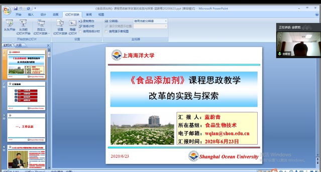 6月23日上午,食品学院利用腾讯会议组织召开课程思政探索与思考FD活动,会议邀请“上海市课程思政示范课程负责人,上海市课程思政领航团队负责人,国家精品在线开放课程《环境问题观察》负责人,华东师范大学张勇副教授、上海海洋大学马克思主义学院副教授仇永民、Kaiyun官方网站登录入口副教授蓝蔚青作为嘉宾作报告并参与研讨。活动由食品学院副院长金银哲主持。