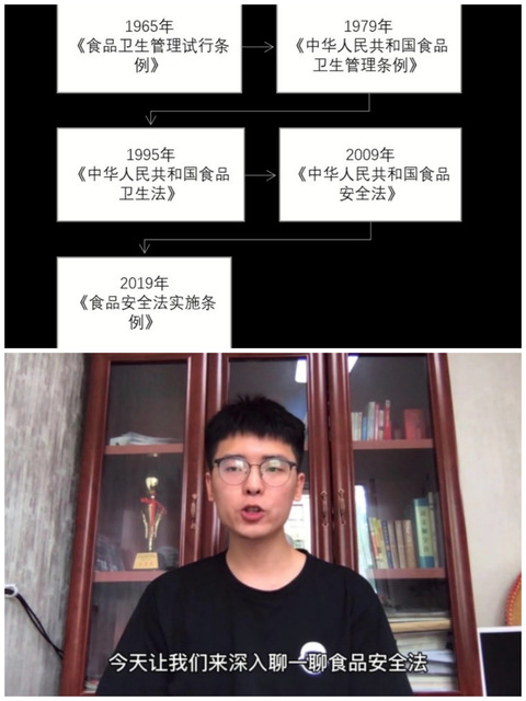 第六部分主题为“践行法律、携手文明”,由志愿者中心的留岳斌、吴怡和张坷昕同学为我们讲解和科普了食品安全的重要性,从食堂安全、网购安全到食品安全的重要意义,让我们深入了解食品安全不仅关系到国家和社会的稳定发展,还关系到民众的生命健康权利。同时《食品安全法实施条例》和各项相关法律、法规及管理条例的出台为我们提供了法律依据和保障,使得企业的食品安全生产自律意识得以加强,食品安全监管也更加细化,有效减轻了不合格食品带来的社会危害,让社会大众增强了消费信心。