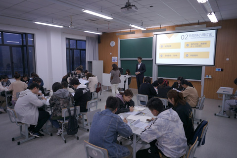 本次比赛以团队任务的方式展开,在初选中的25名同学根据事先抽签分成五组,五人一组完成团队任务。经过抽签之后,要求各小组在35分钟之内完成命题讨论并设计海报,随后进行限时五分钟的任务方案展示。随着主持人的宣布比赛开始,各选手在组内进行了激烈的讨论。35分钟后各组顺利完成任务,并依次上台展示。各组选手侃侃而谈,提出了自己的奇思妙想,精彩的表现赢得了观众的阵阵掌声,也赢得了评委的高度评价。