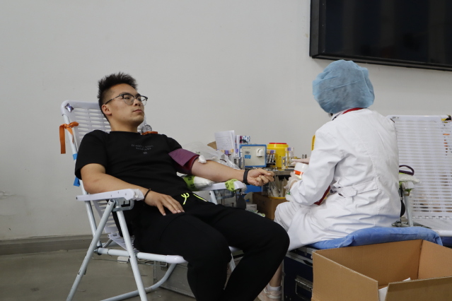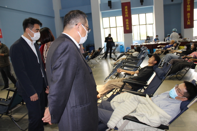 在献血区,同学们接力般地撸起袖子奉献爱心时,前来慰问的老师们时刻关注着献血同学们的身体状况,耐心、仔细地叮嘱注意事项,细声的安抚缓解了同学们的紧张情绪,这种言传身教、身体力行是弘扬甘于奉献精神、为群众办实事的最佳典范。