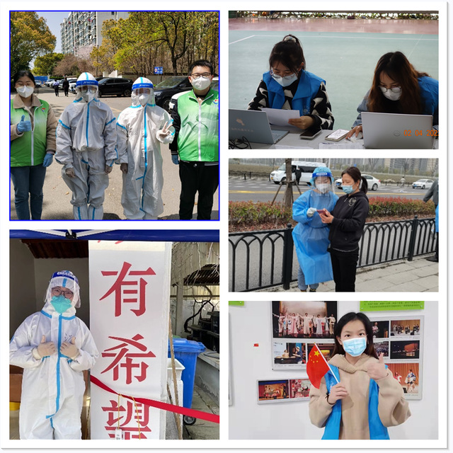 党员许叶玲同学因实验安排,外派至上海交通大学,在交大疫情防控最困难的时期,主动报名担任核酸检测志愿者,第一次穿上“大白”防护服的她感慨到:“深切体会到医护人员、社区工作人员和志愿者的辛苦,他们真伟大,我们更要向他们看齐!”入党积极分子刘贵阁同学,积极参加金海街道疫情防控志愿者服务,从面对防护物资不知如何穿戴,到熟练帮助他人穿衣、脱衣,从望向浩瀚人流感到不知所措,到组织有序、应对自如......她说:“有需要,我就上!这是我们海大人的使命感和担当精神”。同样是入党积极分子的汤迎萍同学,因为苏州疫情,寒假过后一直未能返校,她在家乡积极配合医务人员参与核酸检测的志愿工作,因为服务的地方较远,每天早上四点就要出发,但她任劳任怨,获得社区群众的一致好评。