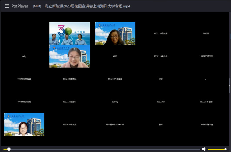11月16日下午,上海海立新能源技术有限公司2023届校园宣讲会——上海海洋大学专场在腾讯会议上如期召开。本次会议由食品学院“海燕生涯指导工作室”邓高燕老师主持,上海海立新能源技术有限公司董事、常务副总牟英涛先生、经营管理部部长周凌先生、技术项目管理部部长王智君女士、人事部资深HR姚丽娟女士和袁杰经理参加宣讲,食品学院院长谢晶教授、专业负责人王金锋老师、毕业生辅导员郝洁老师和一百多位毕业生同学共同参会。