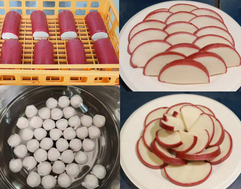 现场制作的鱼丸及双色鱼糕
