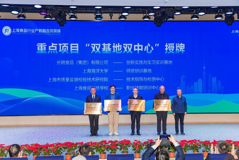 2024年12月12日,一场标志着上海食品行业产教融合新篇章的盛会隆重举行——上海食品行业产教融合共同体成立大会。此次大会汇聚了光明食品(集团)有限公司、上海海洋大学、上海市质量监督检验技术研究院和上海食品科技学校等多方力量,共同擘画产教融合新蓝图。上海海洋大学副校长罗轶与食品学院副院长宋益善代表学校出席了此次盛会。