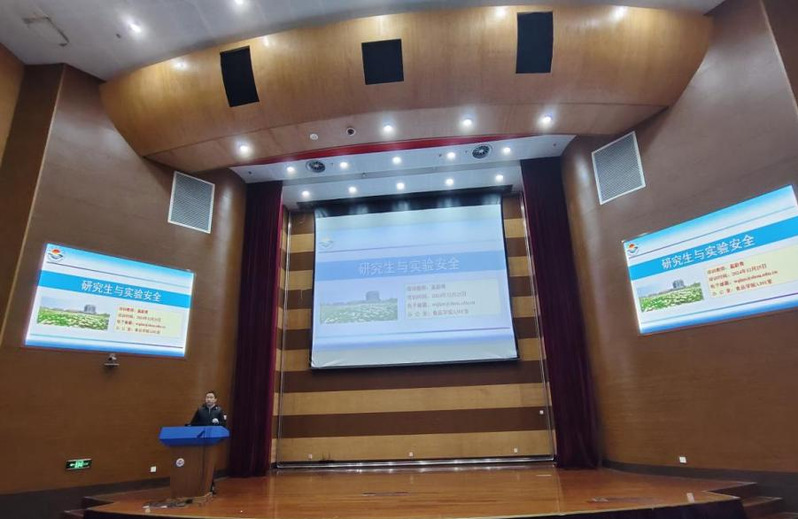 为加强研究生实验室安全防范意识,切实提升学生的防骗意识和自我保护能力,食品学院于12月25日下午在图文104召开研究生安全教育专题讲座。本次讲座由党委副书记刘鹏主持,党委书记游录泉、副院长宋益善、食品学院实验室管理中心主任兼大型仪器设备公共服务平台负责人蓝蔚青、各年级研究生辅导员以及全体研究生参会。